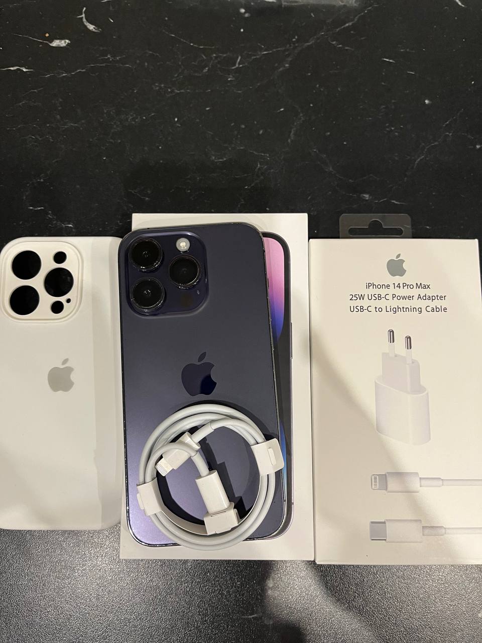 Комплект: телефон, оригинальная коробка, два провода type-c -> lightning, адаптер, чехол