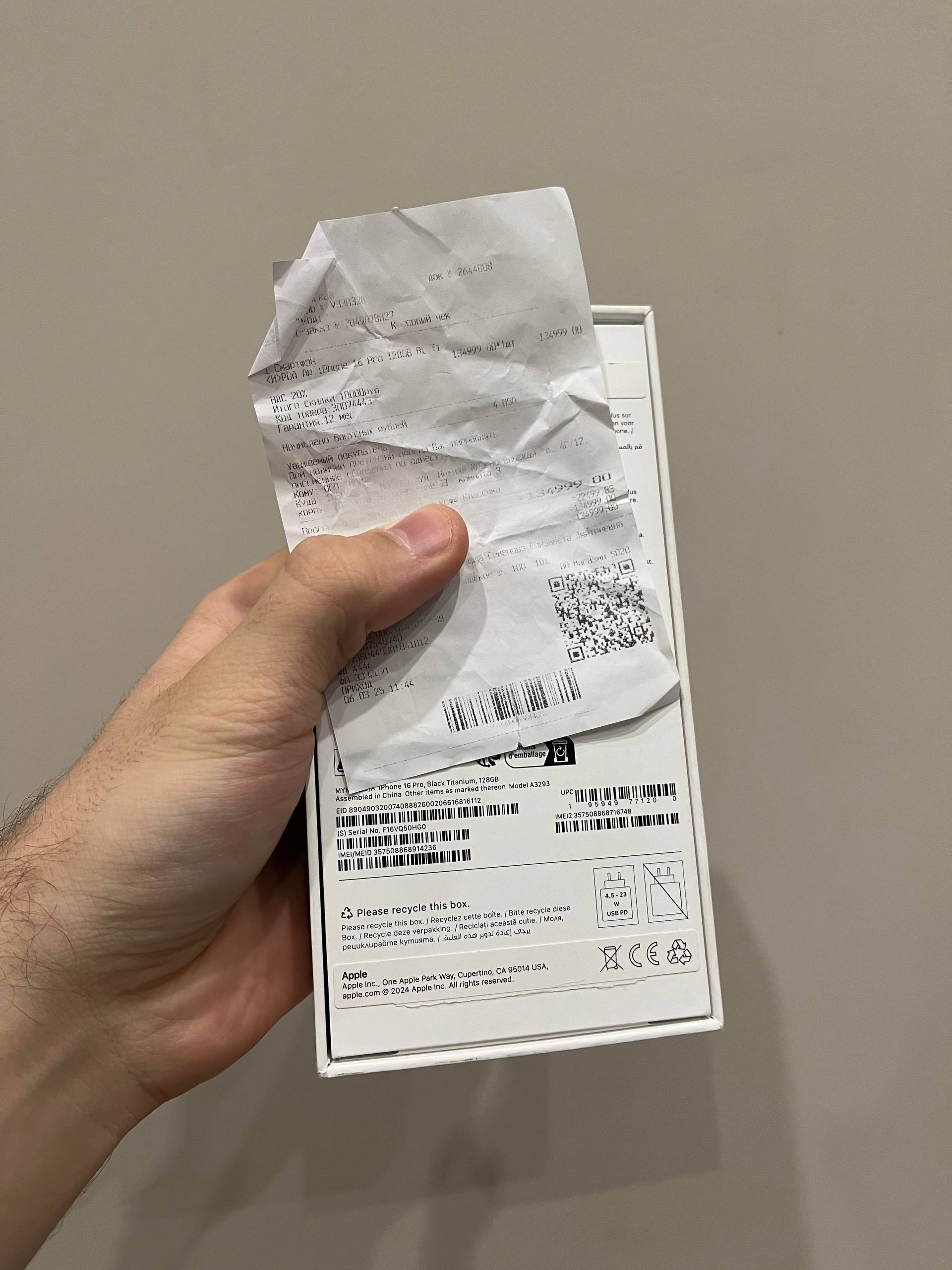 Комплект: телефон, коробка, чек, провод. Адаптер +1.500₽